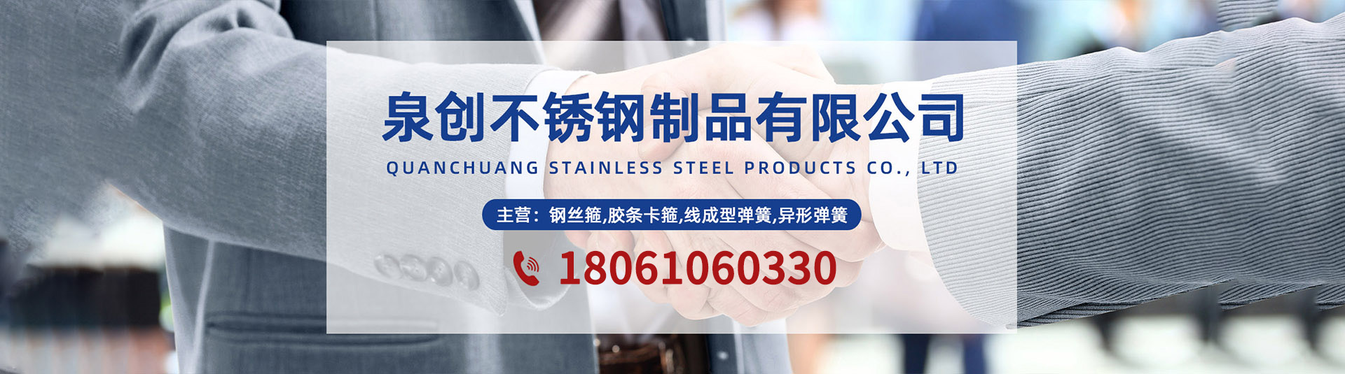 來樣加工訂做各種鋼絲箍、膠條卡箍和線成型彈簧及各種異形彈簧。為用戶提供優良的售后服務是泉創不銹鋼的準則!歡迎各界朋友萑臨參觀、指導和業務洽談。